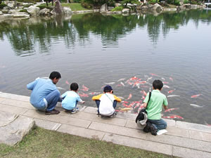 クイズに答えたり、鯉にえさをあげたりして喜ぶたくさんの子どもたちで賑わいました。 ゴール後は素敵な景品がプレゼントされました。