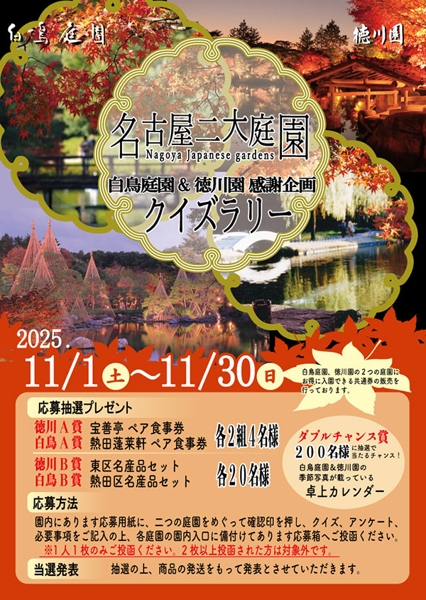 白鳥庭園&徳川園 感謝企画 名古屋二大庭園 クイズラリー